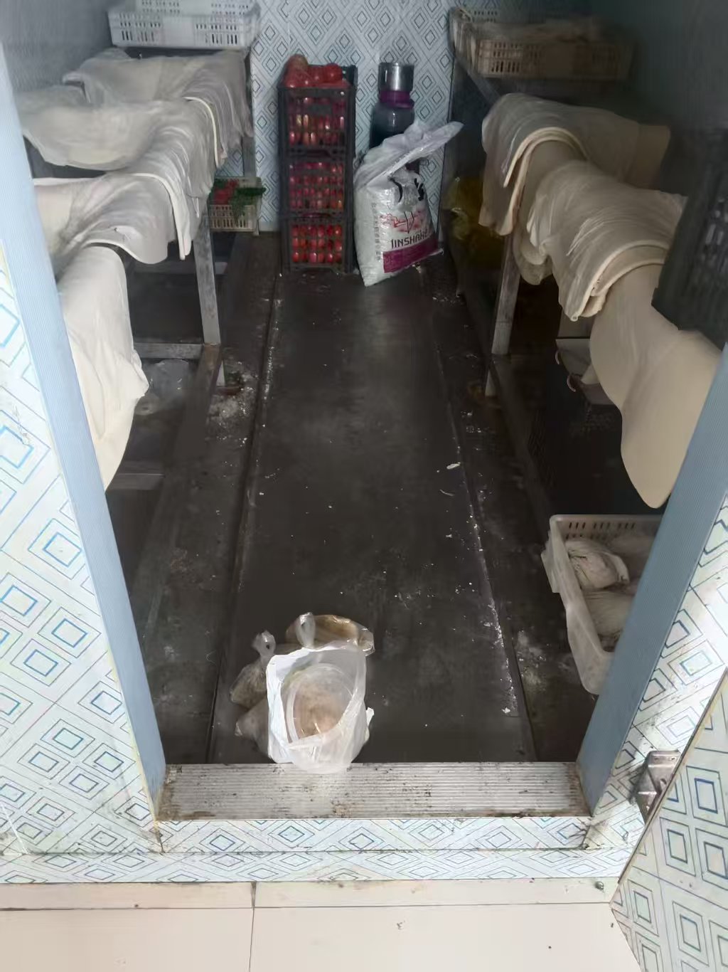 主要問題:①冷庫地面清潔不到位;②操作區(qū)環(huán)境衛(wèi)生差;③操作間蒼蠅較多;④地面衛(wèi)生環(huán)境極差。